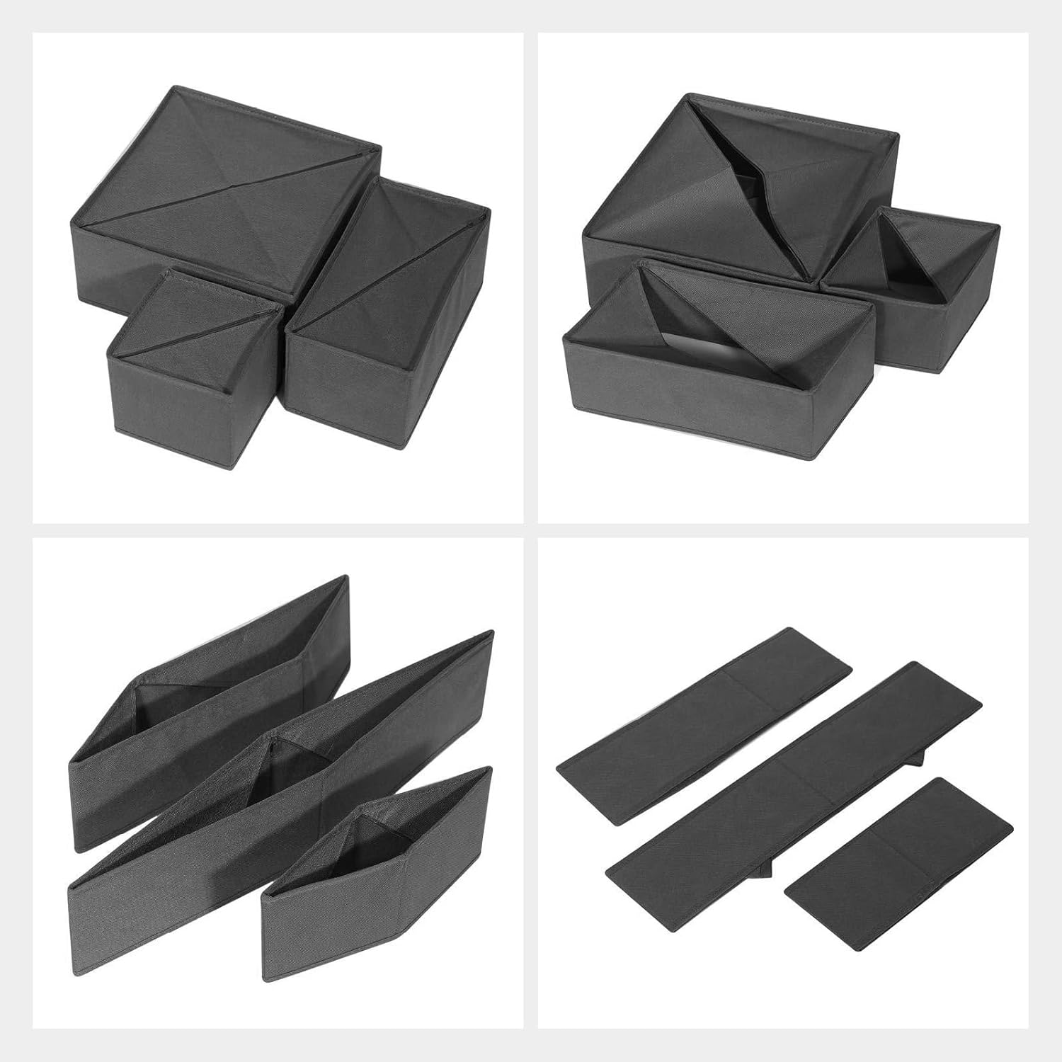 • 【QUALITY MATERIAL】This fabric dresser drawer divider organizer is made with non-woven fabric,which is soft,breathable,easy clean,durable and not easy to bend,deform and tear.These foldable clothes organizer are stackable to take advantage of the space.