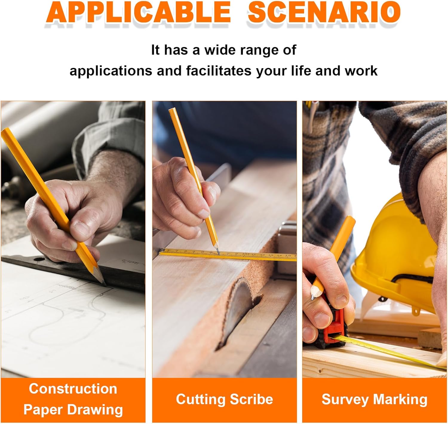 • Multipurpose: wood carpenters pencil can withstand the pressure of marking on hard, rough, and uneven surface materials, such as wood, plywood, cardboard, unprocessed wood, wood, paper, concrete, bricks, and so on