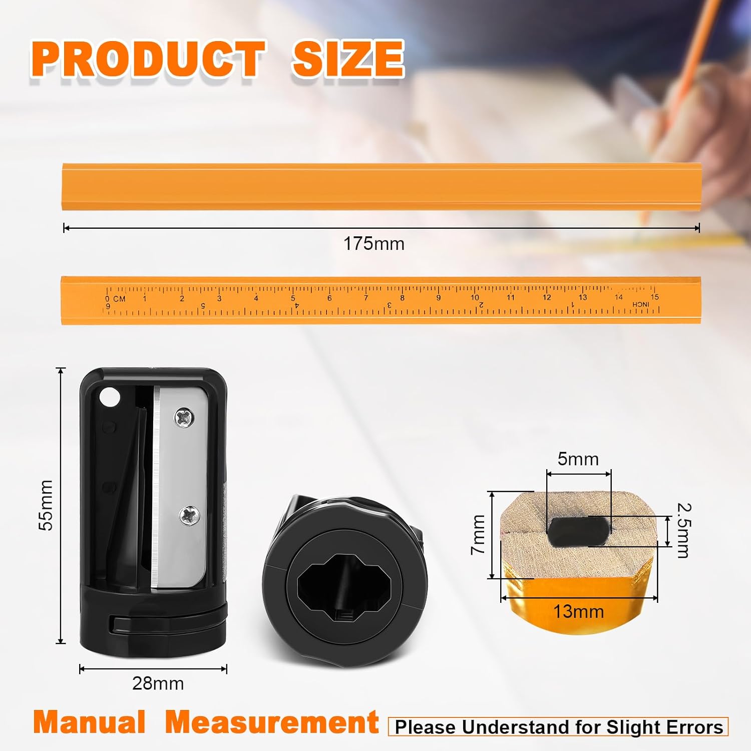 • The Packaging Includes: you will get 200 pieces of carpenter pencils with printed ruler on one side, and 2 pieces of carpenter pencil sharpeners to point the pencil, which can help you easily mark on the wood