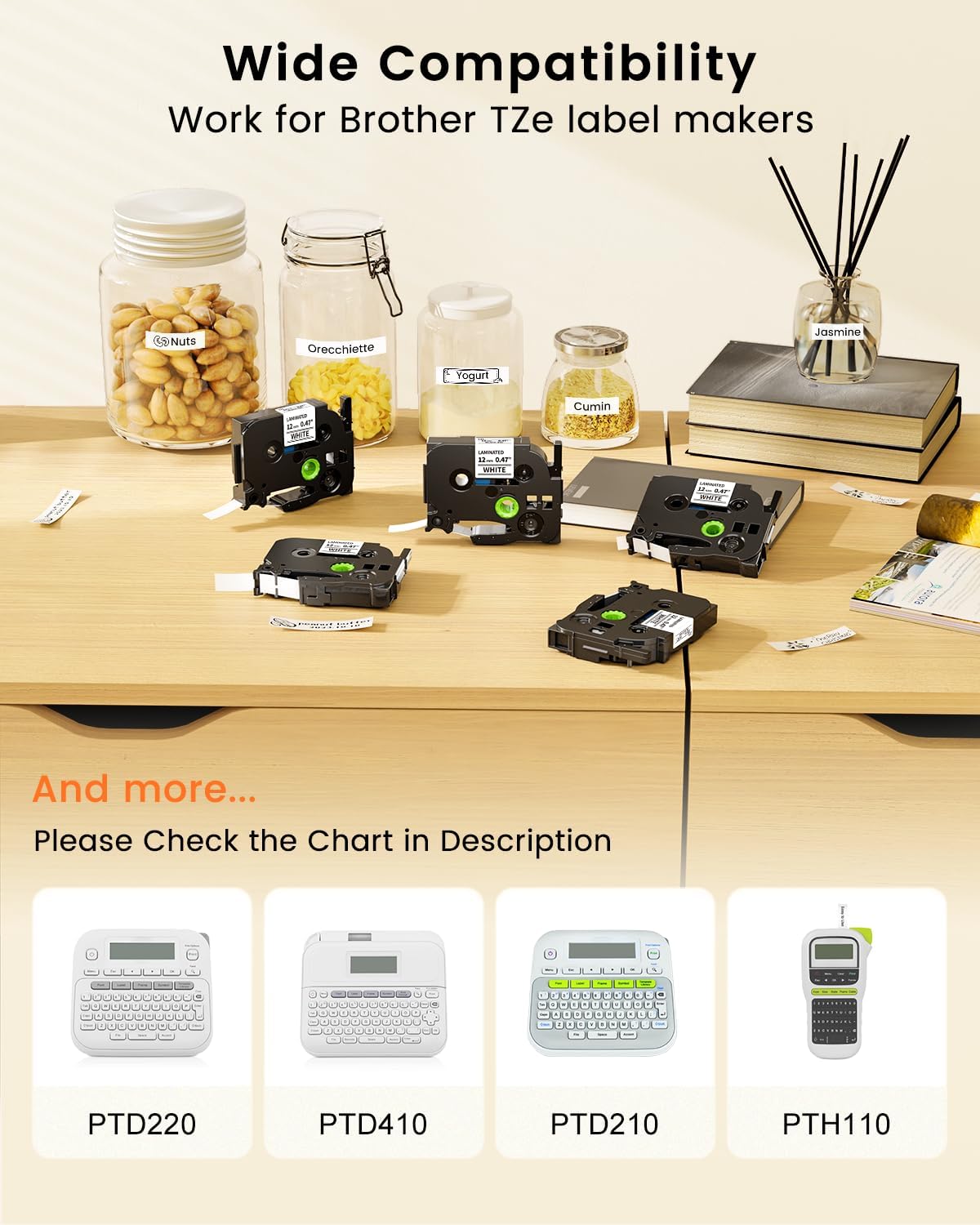 • Strong Adhesion that Lasts – Designed for durability, these replace for p touch label tape resist water/extreme temperature/oil/abrasion/fading and peeling, sticking reliably on various surfaces from kitchen containers to office binders, ensuring your labels last as long as you need them