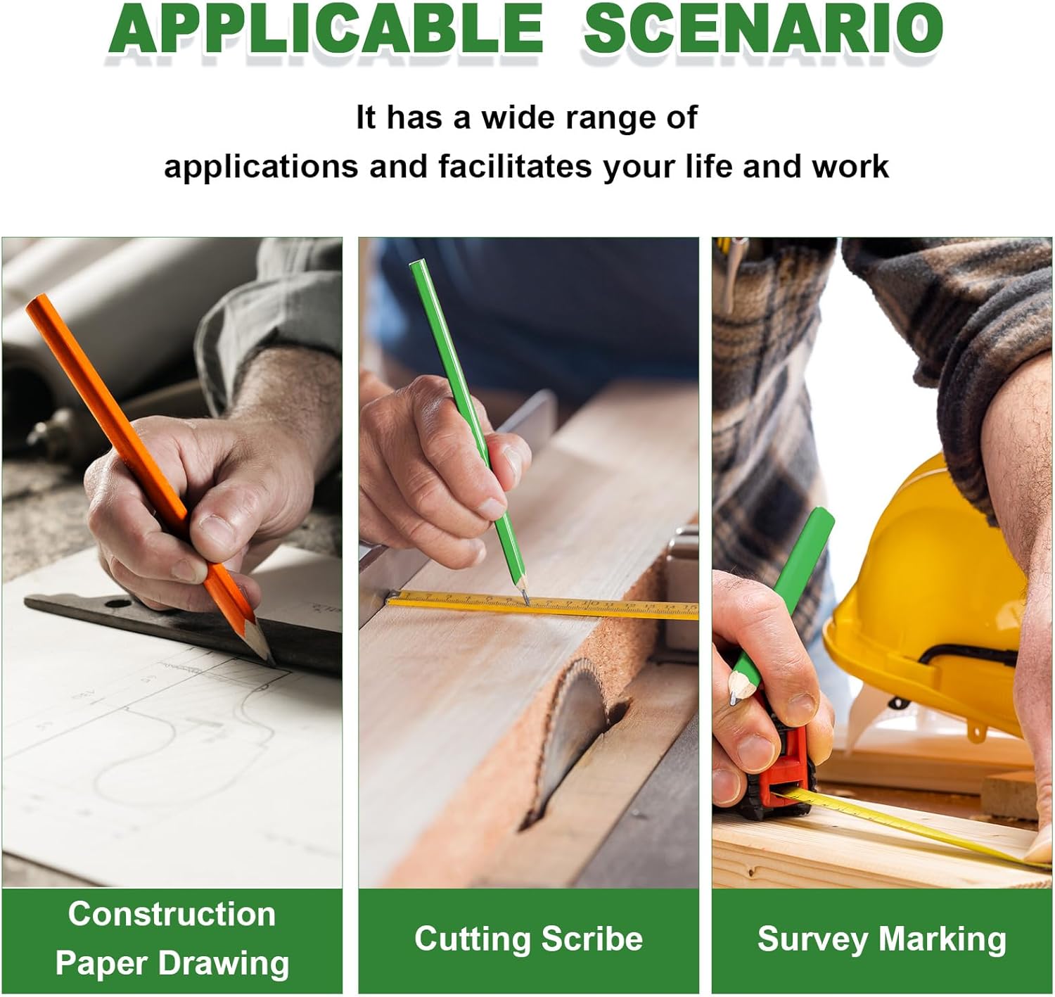 • Multipurpose: wood carpenters pencil can withstand the pressure of marking on hard, rough, and uneven surface materials, such as wood, plywood, cardboard, unprocessed wood, wood, paper, concrete, bricks, and so on
