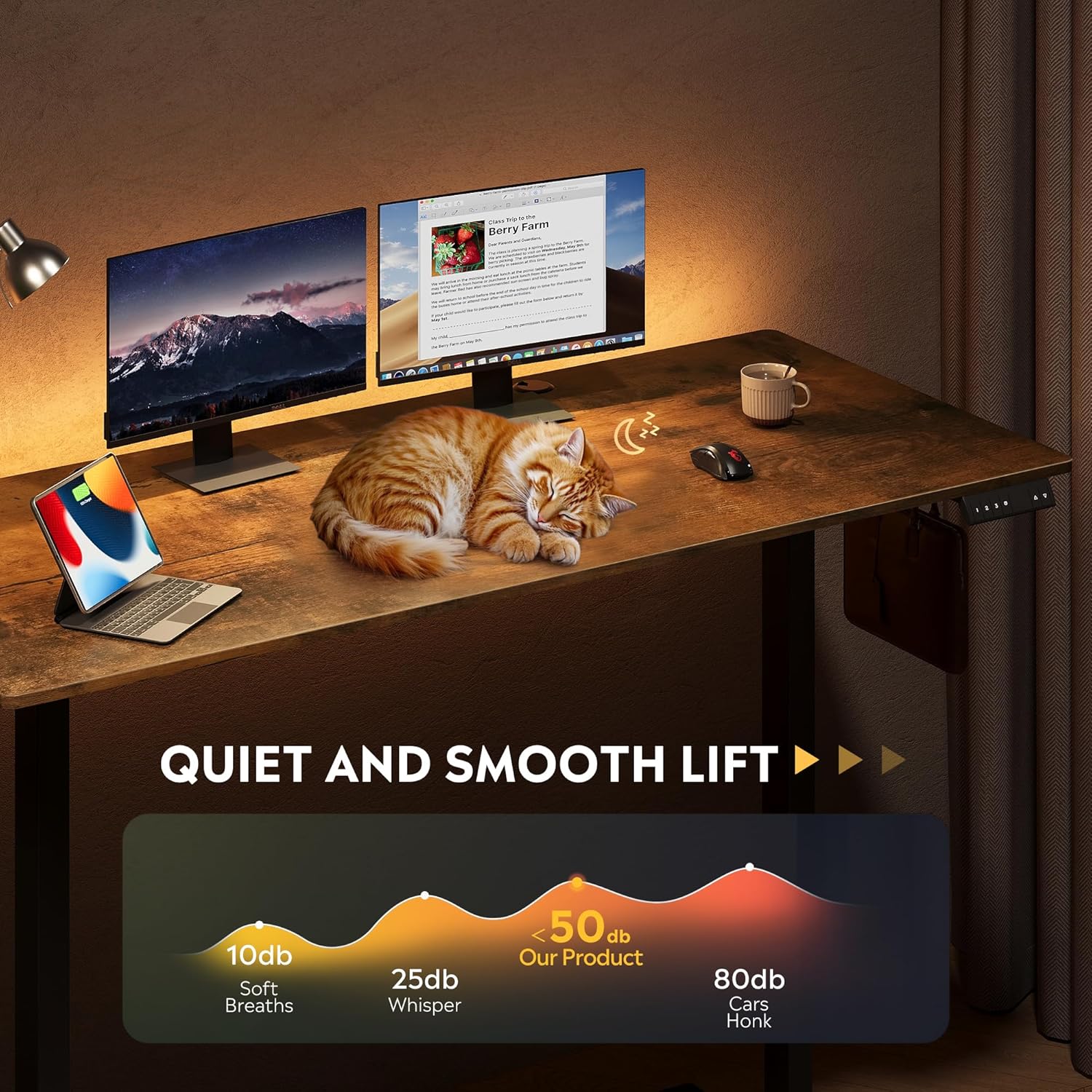 • 【Quite & Smooth Height Adjustments】Tri-motor system delivers whisper-quiet (<50dB) height transitions (28.35"-46.45") in seconds, eliminating manual adjustments and prevent desktop tilting. Standing desk adjustable height perfected for ergonomic shifts, ensuring buttery-smooth operation whether sitting or standing.