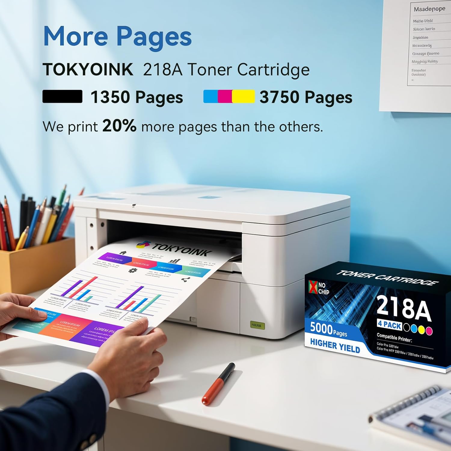 • No Chip: TOKYOINK 218A High Yield compatible toner cartridge 4 Pack do NOT come with chip, please remove the OEM 218X or 218A CHIP and install it into our new 218A High Yield toner cartridge