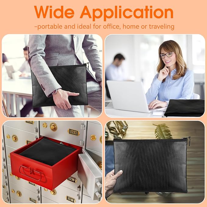 • Large Size: Measuring 10" x 13.5", this black fireproof bag is large enough to store documents, passports, certificates, money, and small valuables