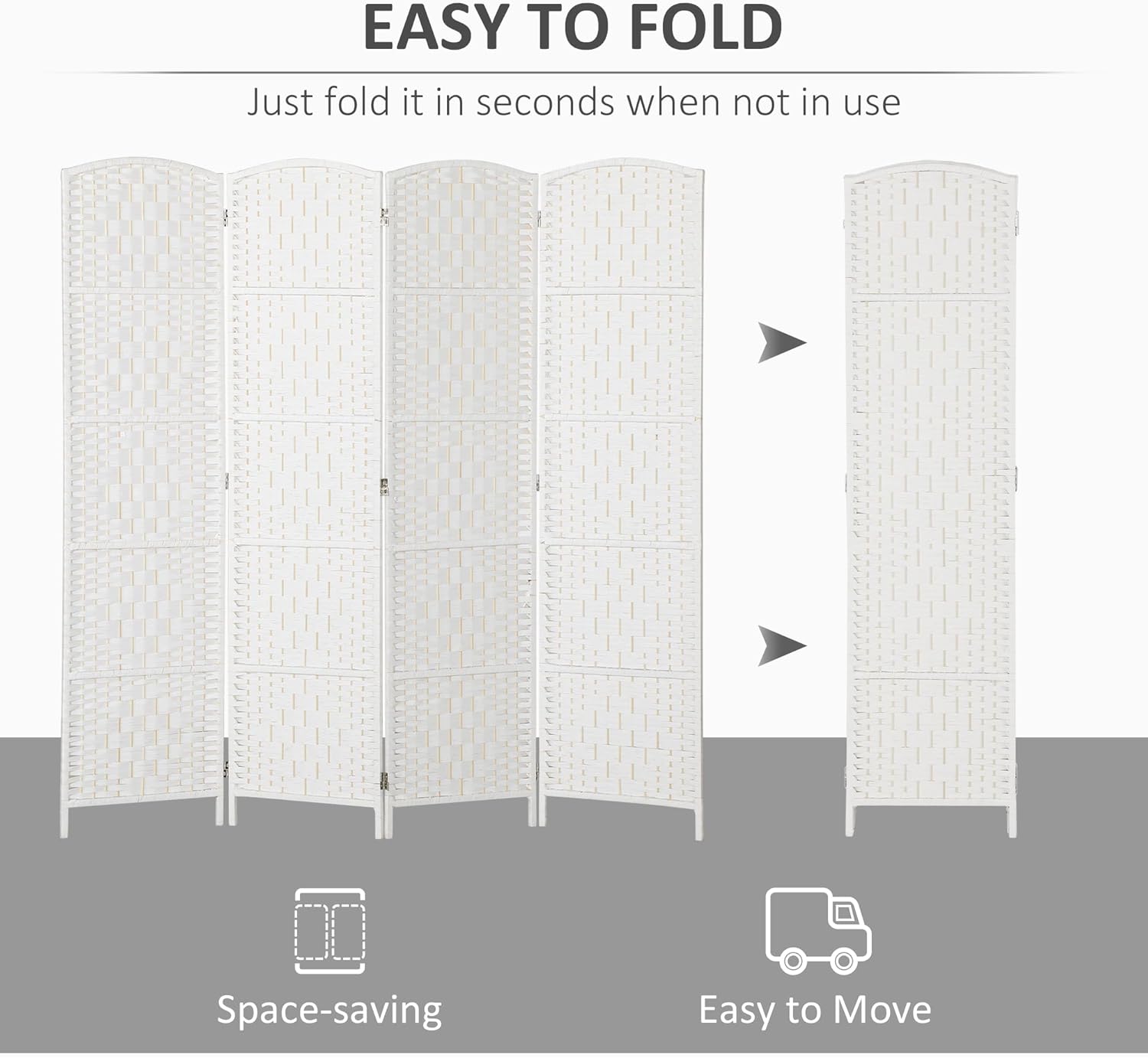 HOMCOM Room Divider, 4 Panel Folding Privacy Screen, 6FT Tall Portable Wicker Weave Partition Wall Divider for Bedroom, Home Office, White