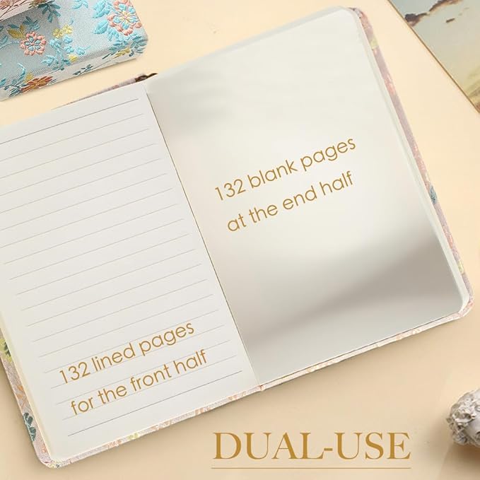 • Chic Fabric Design: the cover features a delightful silk cloth adorned with elegant florets, adding a touch of sophistication to your desk or bag.