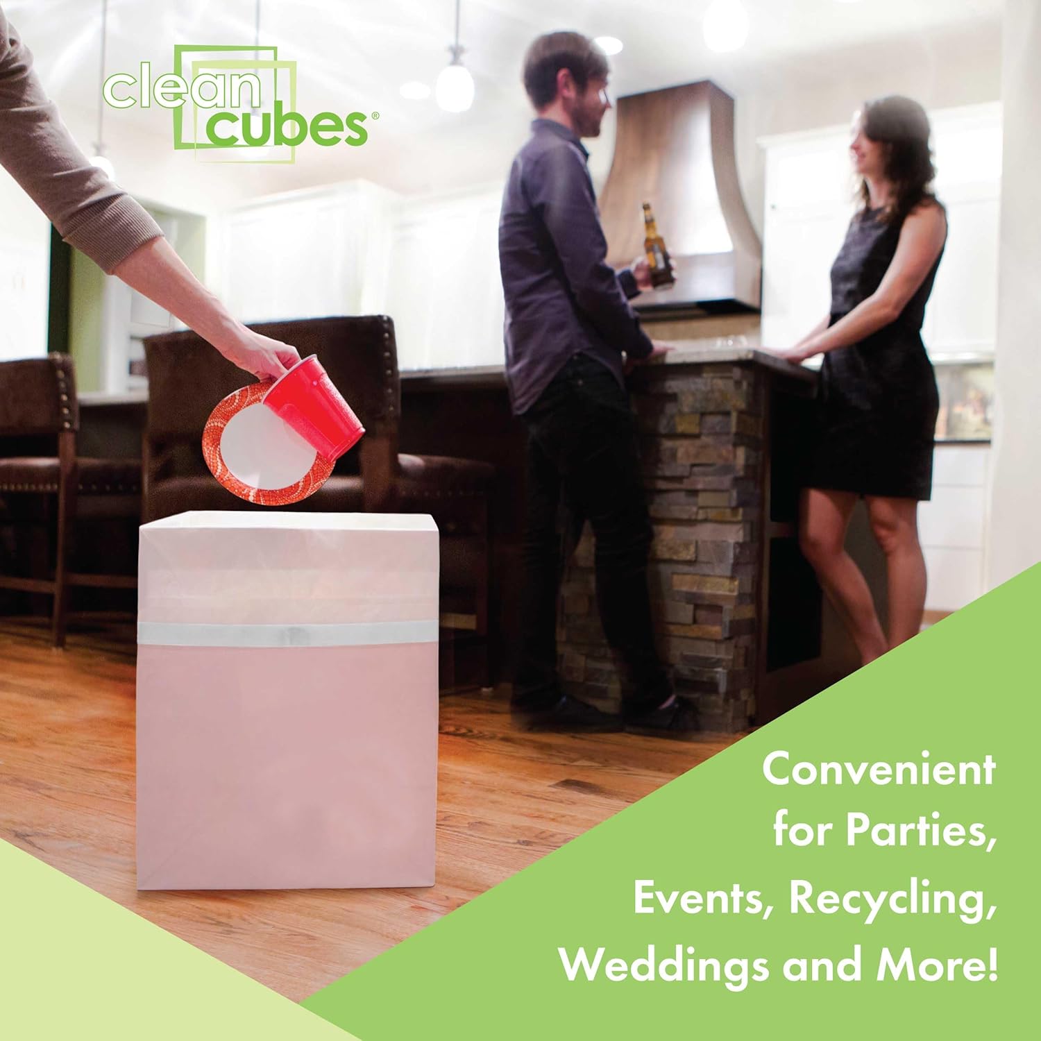 • ✅【EFFORTLESS CLEANUP & DISPOSAL】Simply unfold, use, and toss — keep your event clean and mess-free without extra effort. Clean Cubes are disposable recycling bins and trash cans with a patent-protected design and custom-fitted trash liner in each bin.