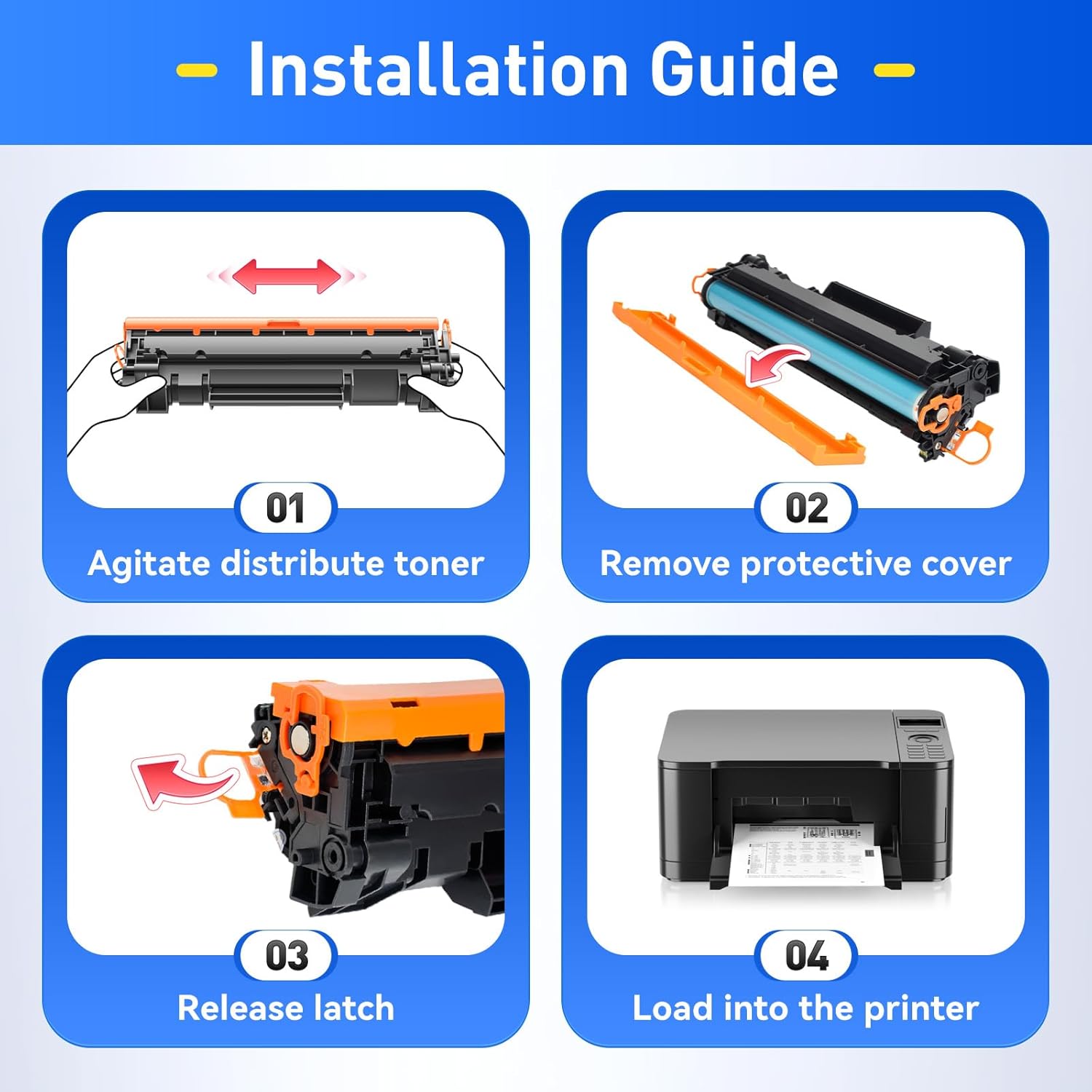 • The latest chip version: The JCTONER toner cartridges are equipped with the latest version of built-in chips, ensuring perfect compatibility between each toner cartridge and the printer. This enables you to print efficiently while maintaining stability and reliability, making installation convenient without the need for manual adjustments. All JCTONER toner cartridges have undergone strict quality testing and have obtained ISO9001 certification. High-quality toner cartridges can meet the demand for high printing volume. The fine toner ensures clear and stain-free printing results and extends the lifespan of the printer. You can purchase with confidence.