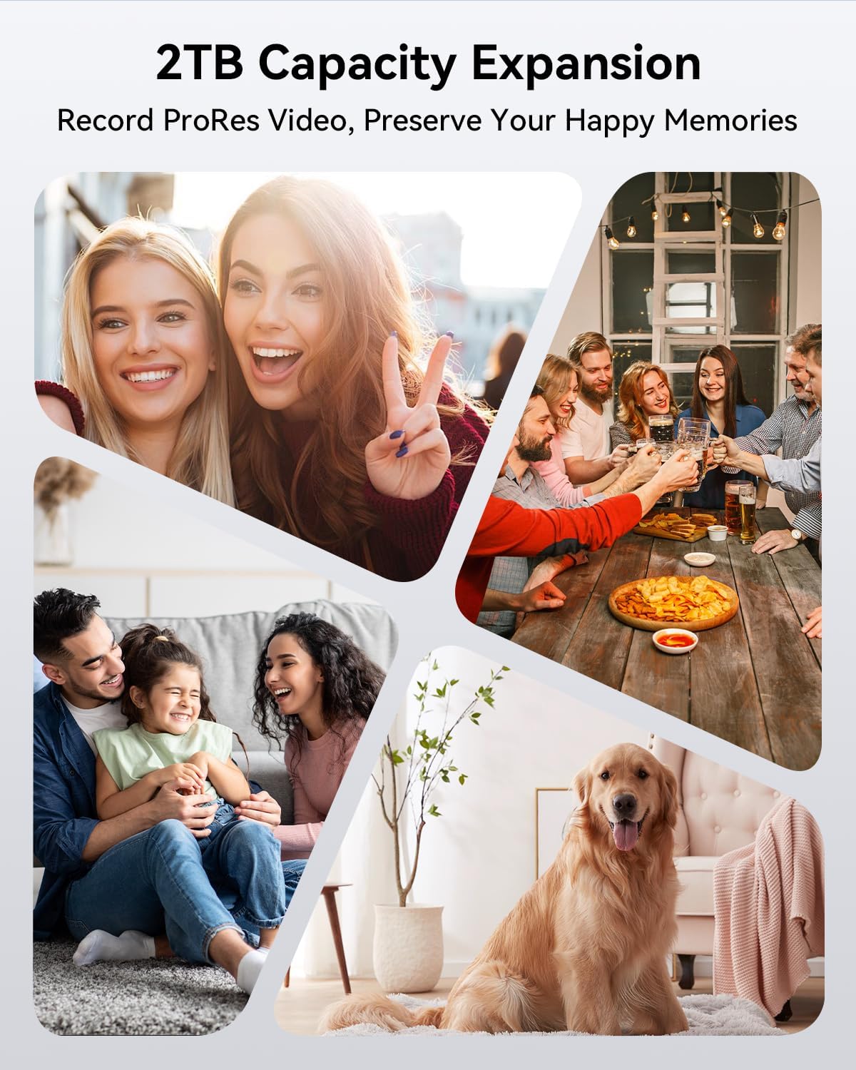 • 【Supports 4K ProRes Video Recording】Magnetic external solid state drive supports 4K ProRes video recording on iPhone 15/16 Pro/Max. It enables real-time recording and storage without needing a secondary transfer, allowing you to capture beautiful moments in your life at any time.