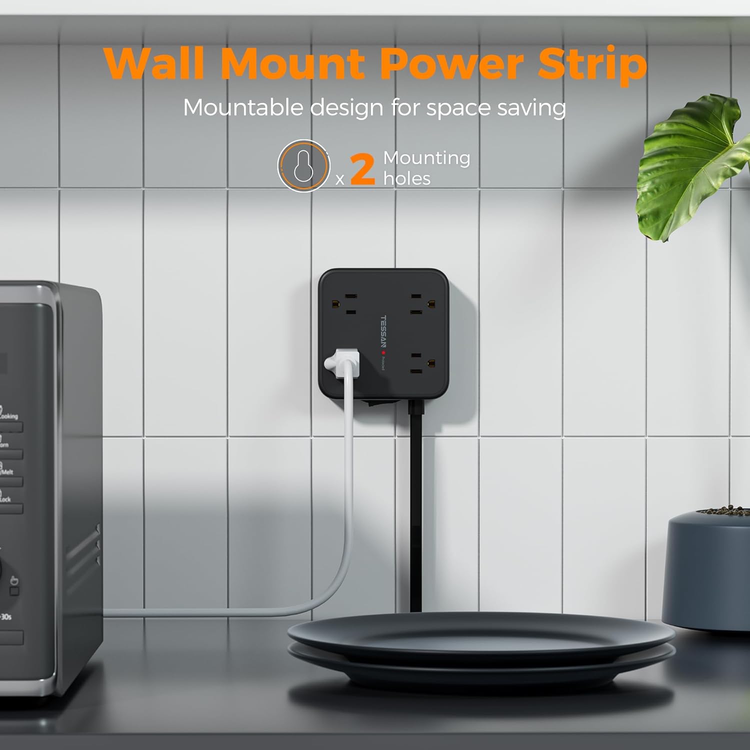 • Mountable Power Strip: 2 mounting holes design allow the extension cord flat wall plug securely installed in various applications, such as wall mounts, floor mounts, under counters and more; 4 rubber feet at the bottom efficiently keep it from slipping and sliding