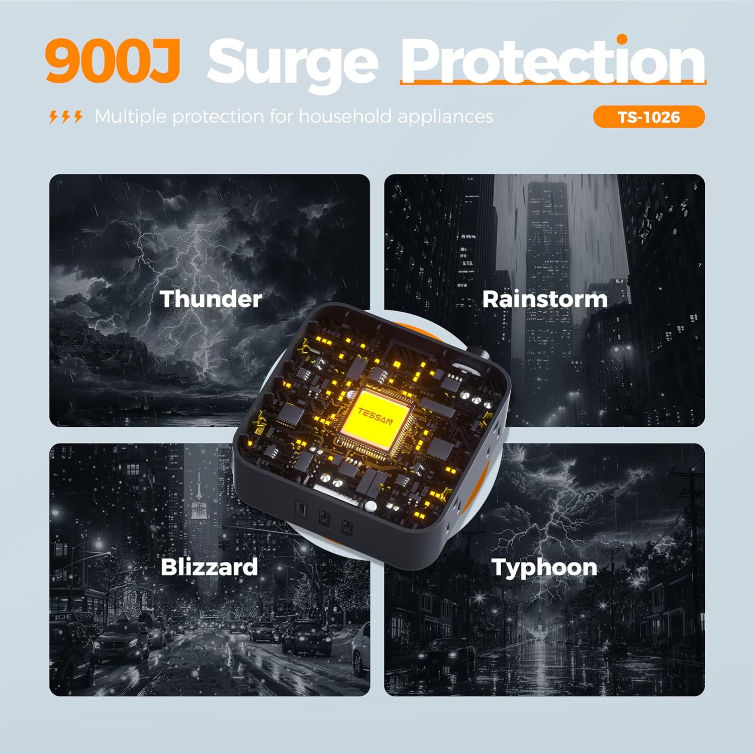 • 900J Surge Protector Outlet: High wattage power strip has On/Off switch can automatically shut off to protect your electronics; Equipped with overload protection, power strips with surge protection provide you with a safe charging environment