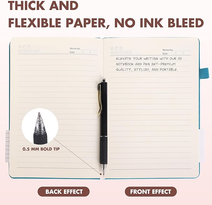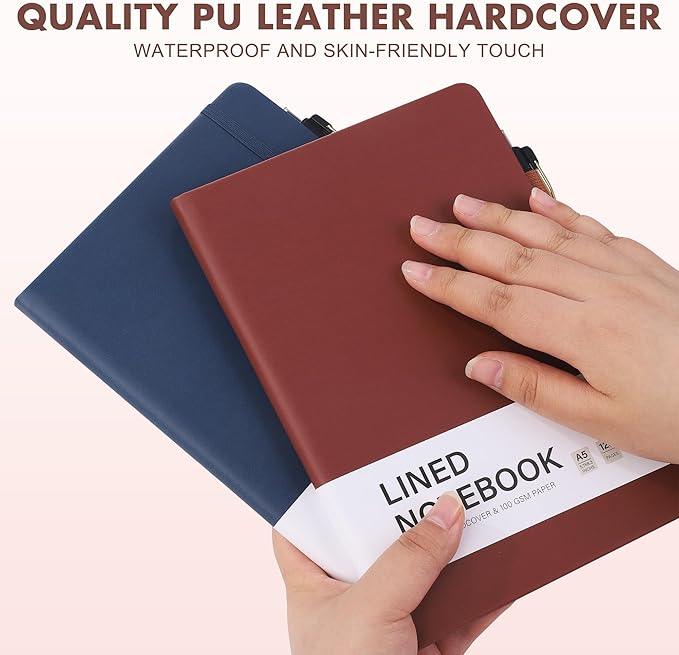 • Quality leather & paper: our A5 notebooks are made of 100 gsm thick paper, providing a smooth touch and resisting ghosting and bleeding, compatible with most pens, pencils and markers; the lined journal notebook with pens feature premium PU leather hardcover, waterproof and easy to clean, helping the notebooks stay upright without the pages curling or bending; the ballpoint pen is designed with a 0.5 mm bold tip for smooth, non-leaking drawing, ideal for use with the journal