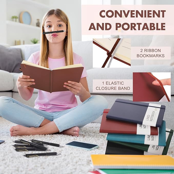 • Thoughtful design: each PU leather notepad is equipped with a pen holder for convenient storage, enhancing efficiency; the lined journal notebook includes two bookmarks for easier navigation, rounded corners for a comfortable user experience, and an elastic band to protect your privacy and keep the internal pages clean
