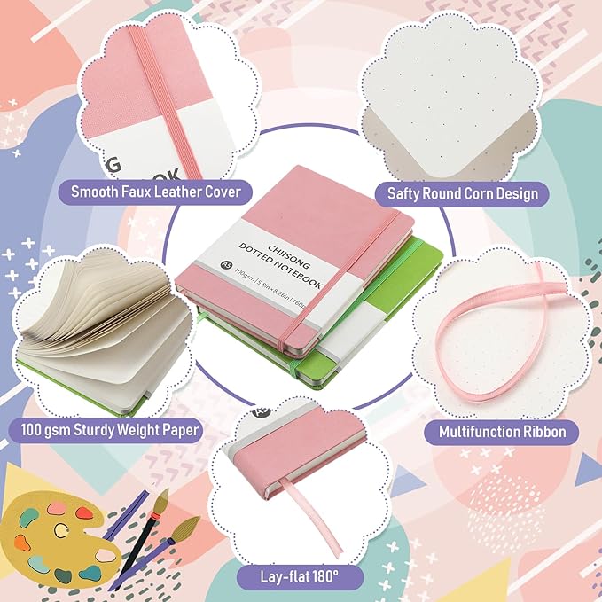 • Package Includes: our bullet dotted notebooks are available in 5 classic colors, two of each color, each journal has 160 pages of dot grid paper, sufficient quantity to meet your daily replacement or share with friends