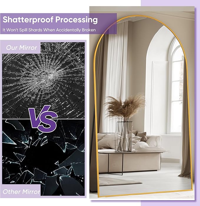 • High Quality and Safety Guarantee: The floor mirror is made of 3mm HD nano glass which provides high definition reflection. The back features an anti-explosion film, even if it's accidentally damaged, shards won't scatter everywhere, safe for surrounding children or pets