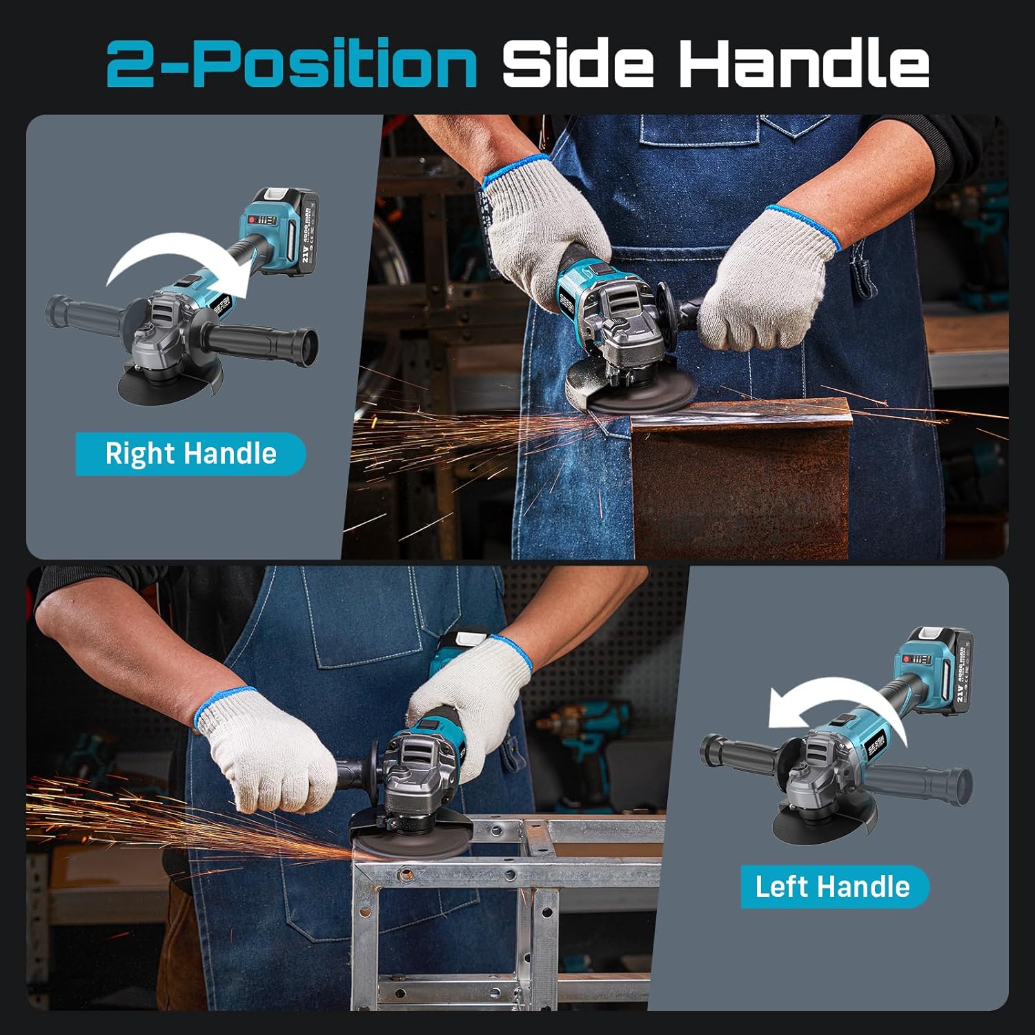 • High-Performance Brushless Motor: The Seesii angle grinder cordless features a high-efficiency brushless motor that eliminates the need for frequent carbon brush replacements. It operates with less noise, reduces energy consumption, and offers a longer lifespan, making it a more durable and efficient tool for any job.