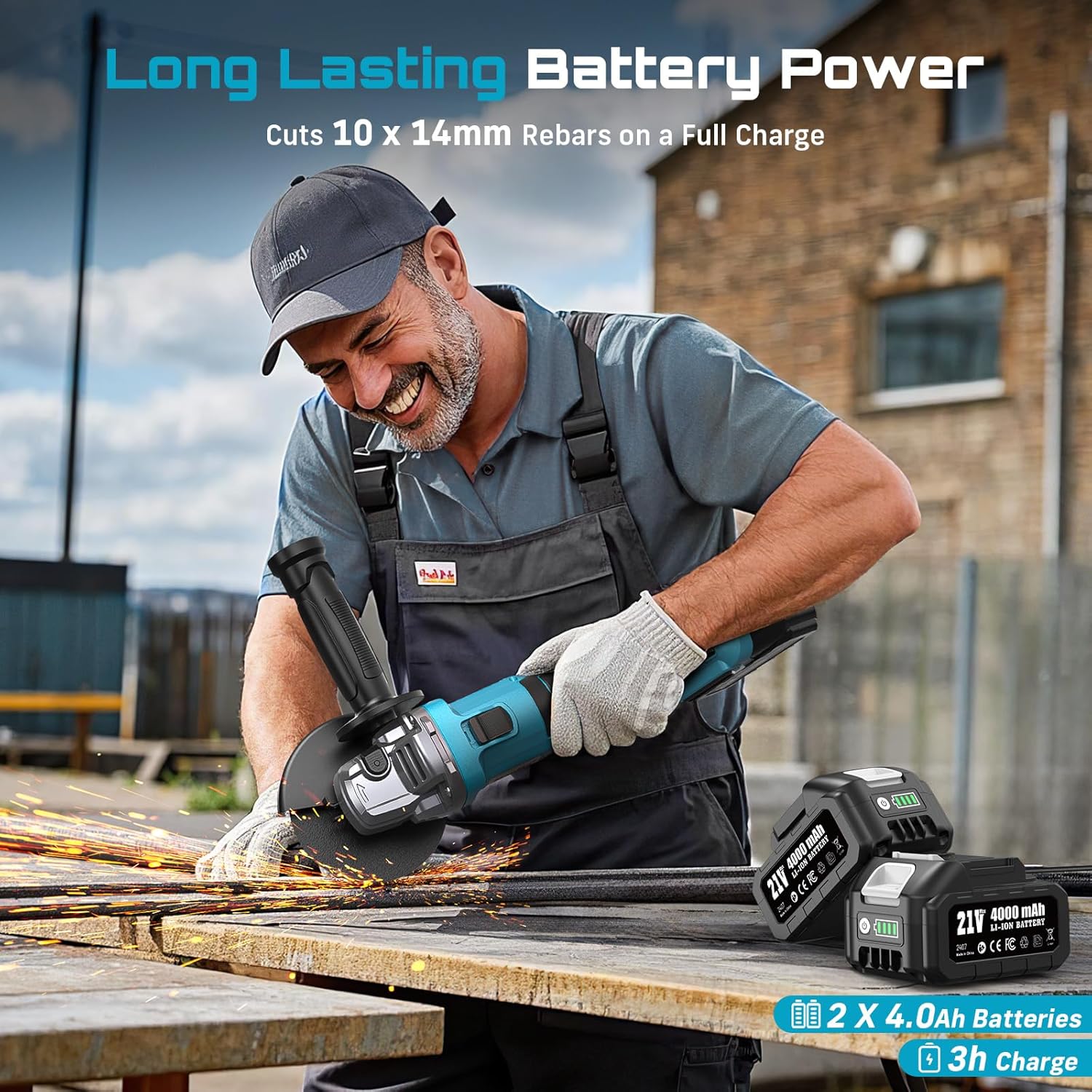 • What You Will Get: The Seesii brushless angle grinder kit includes: 2 x 4000mAh Batteries, 1 x Charger, 1 x Side Handle, 4 x Cutting Wheels, 4 x Flap Wheels, 1 x Wood Carving Wheel, 2 x Wheel Retainer Sets, 1 x Pair of Gloves, 1 x Pair of Safety Goggles, and 1 x Carrying Bag — providing you with everything needed for a comprehensive grinding solution