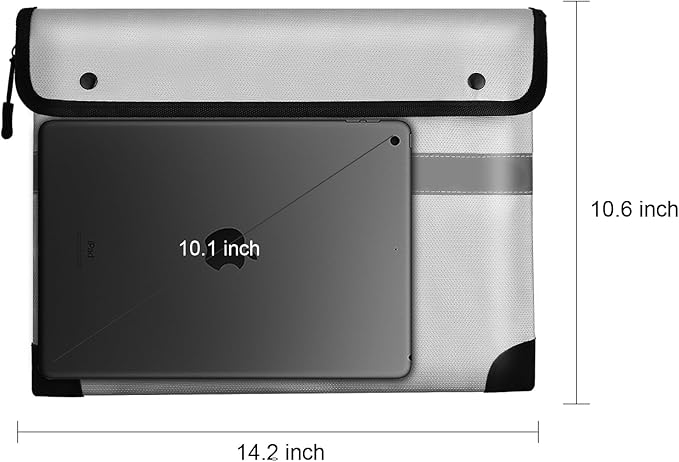 • Spacious Yet Portable - Measuring 10.6"x14.2", this fireproof bag provides ample space to store A4 documents, passports, birth certificates, cash, and more—without sacrificing portability. Lightweight and easy to carry, it’s the ideal companion for everyday security.