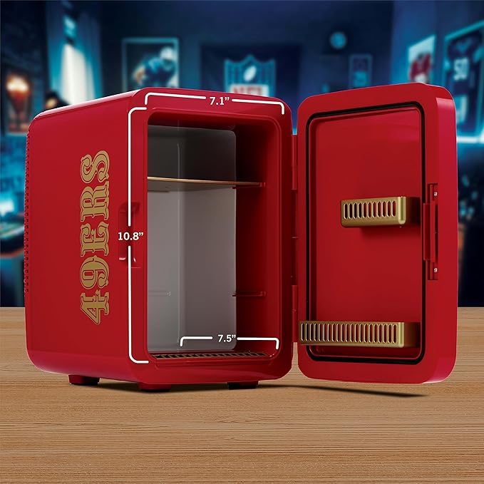 • Officially licensed Team Swag: Mini fridge features the 49ers logo and team colors (+ the NFL logo). Big Game: 10L capacity—holds up to 15 12 oz. soda cans or a whole bunch of snacks