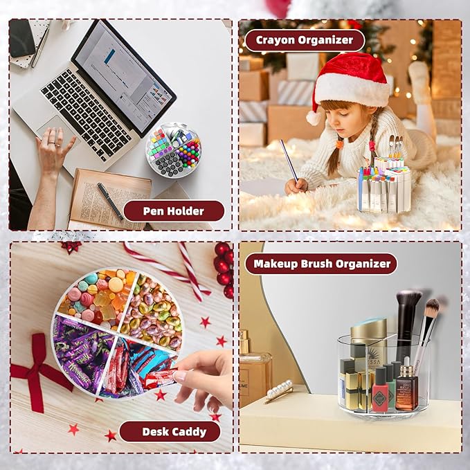 • Multipurpose Acrylic Desk Organizer - Our pen organizer is not only perfect for storing your desktop stationery such as pens, pencils, crayon, markers, highlighters, rulers,erasers, scissors, letter openers, and many other desk widgets. Beyond pens and pencils, this holder is versatile enough to store a variety of items, including makeup brushes, crafting tools, office supplies, and more. Its multi-functional design makes it a valuable addition to any home, office, or studio.