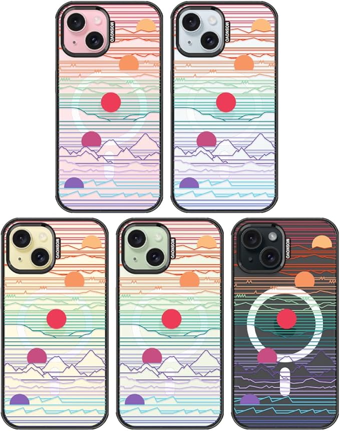 MOSNOVO Magnetic Case for iPhone 15, 10ft Military-Grade Protection, Compatible with Magsafe, Shockproof Phone Case for iPhone 15 - Sunrise and Sunset - Clear Black
