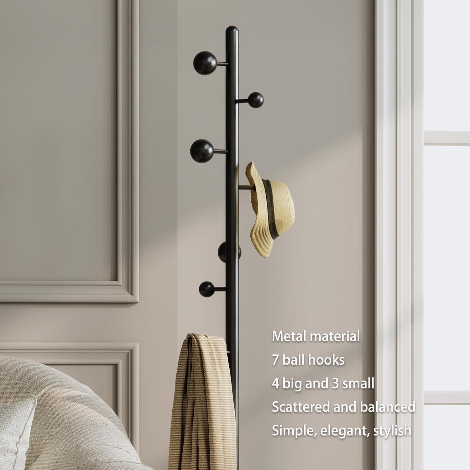 • 7 EXQUISITE BALL HOOKS: The coat rack 4 large and 3 small spherical hooks can meet your daily needs and make full use of small spaces to hang more items. The smooth connection on the branch takes good care of your clothes