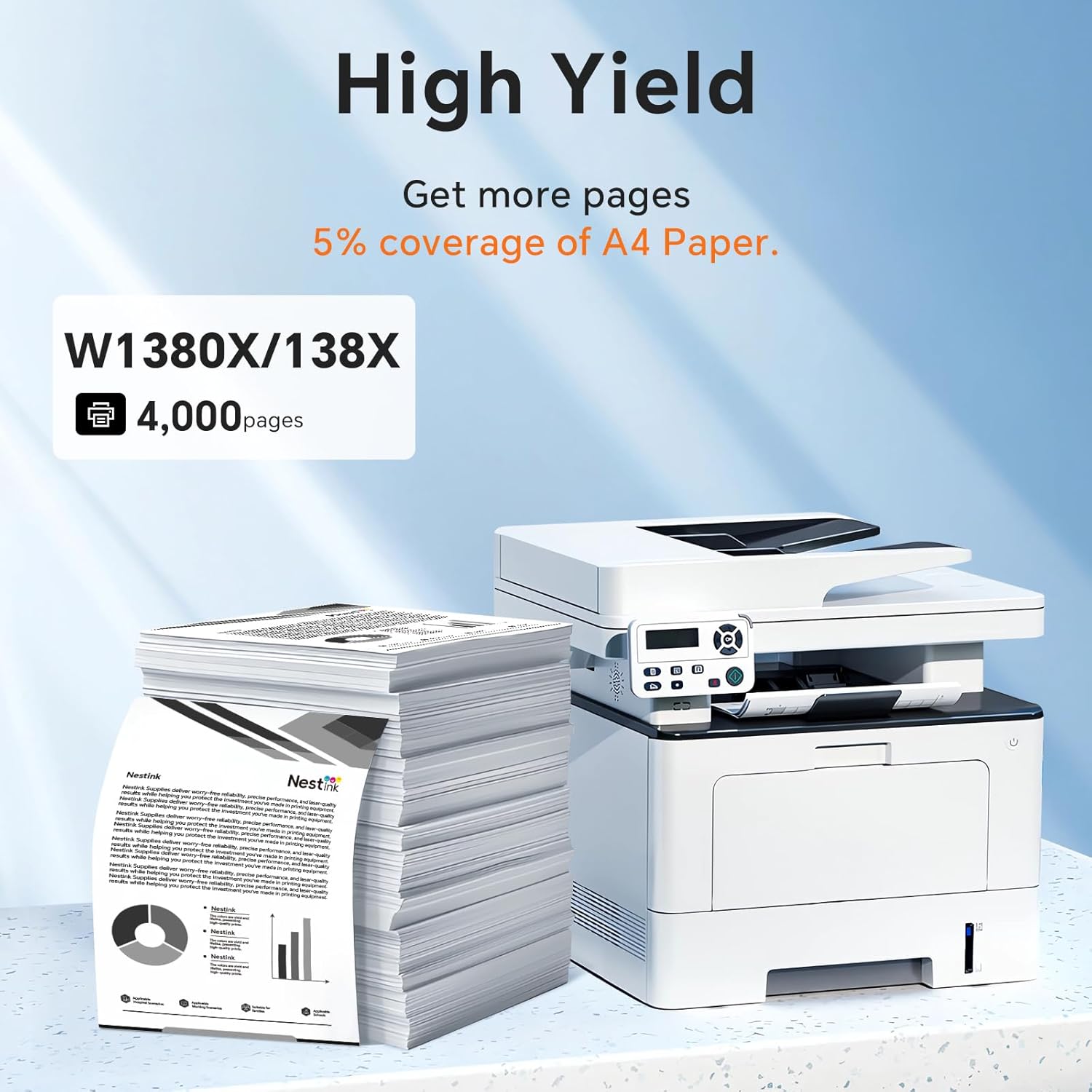 • High Page Yield: 4,000 Pages for 138X W1380X Black Toner Cartridges (Letter/A4, at 5% Coverage)