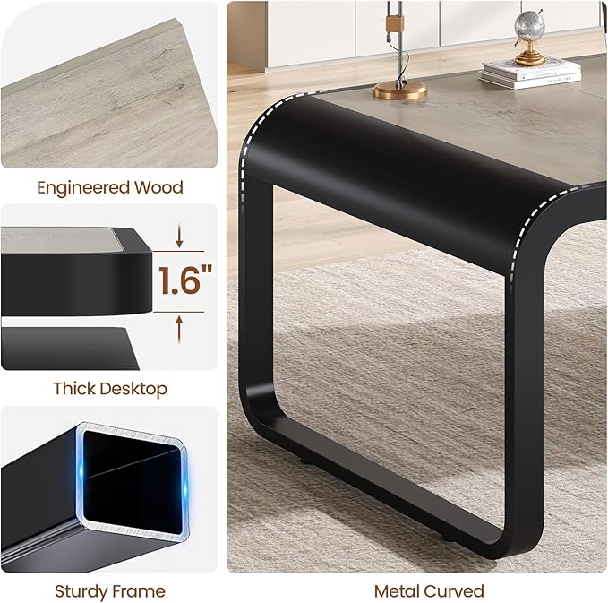 • 【Sturdy and Durable】Unlike ordinary desks, this executive desk features a 1.6-inch thickened desktop and solid metal legs, which is sturdy and durable. The adjustable feet can keep it stable on uneven floors. The desk's top and filing cabinet are made from FSC certified wood.