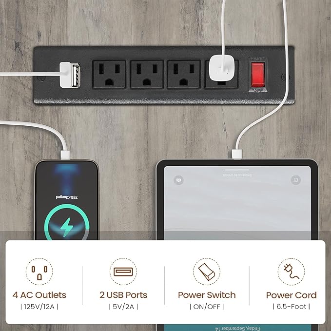 • 【Built-in Charging Station】Our charging station includes 4-Outlet & 2 USB Ports to provide power for up to 6 devices simultaneously. Also includes an on-off switch, thanks to the on-off switch, one-button power off to ensure safe electricity use, which strengthens security.