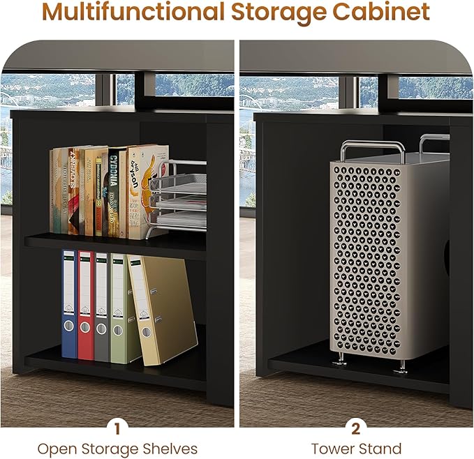 • 【Ample Storage Space】Equipped with storage cabinet, removable shelves, CPU stand, 2 storage drawers and 1 file drawer. The file drawer can hold letter/A4/legal files. The storage drawers and open shelves are perfect for storing any other office supplies. This executive desk creates a versatile workstation for all your needs.