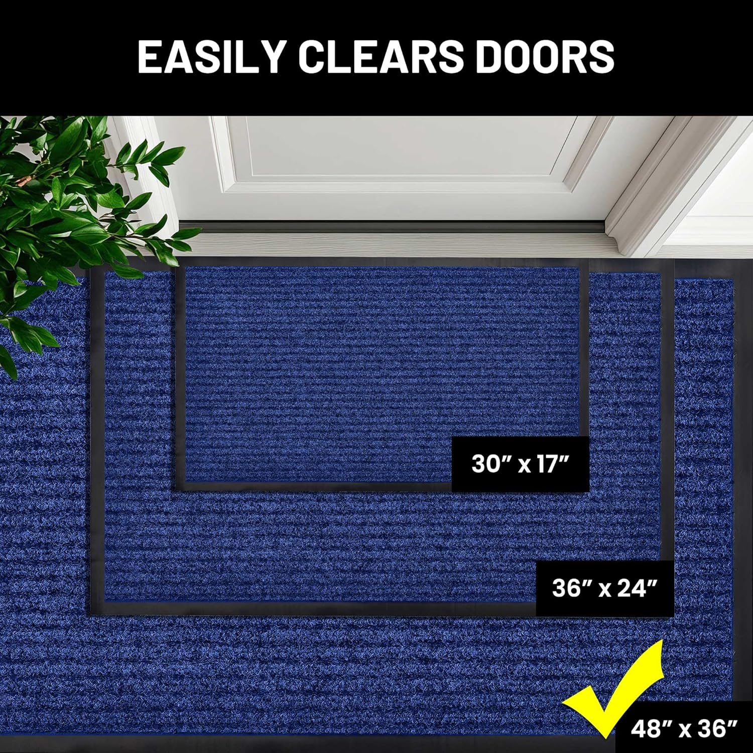 • Includes 2 BLUE X-Large Indoor Outdoor Floor Mats: Enjoy two amazing heavy duty high quality ribbed polyester door mats (Larger 48" x 36") that will be perfect welcome for the everyday home. Amazing value 2-Pack.