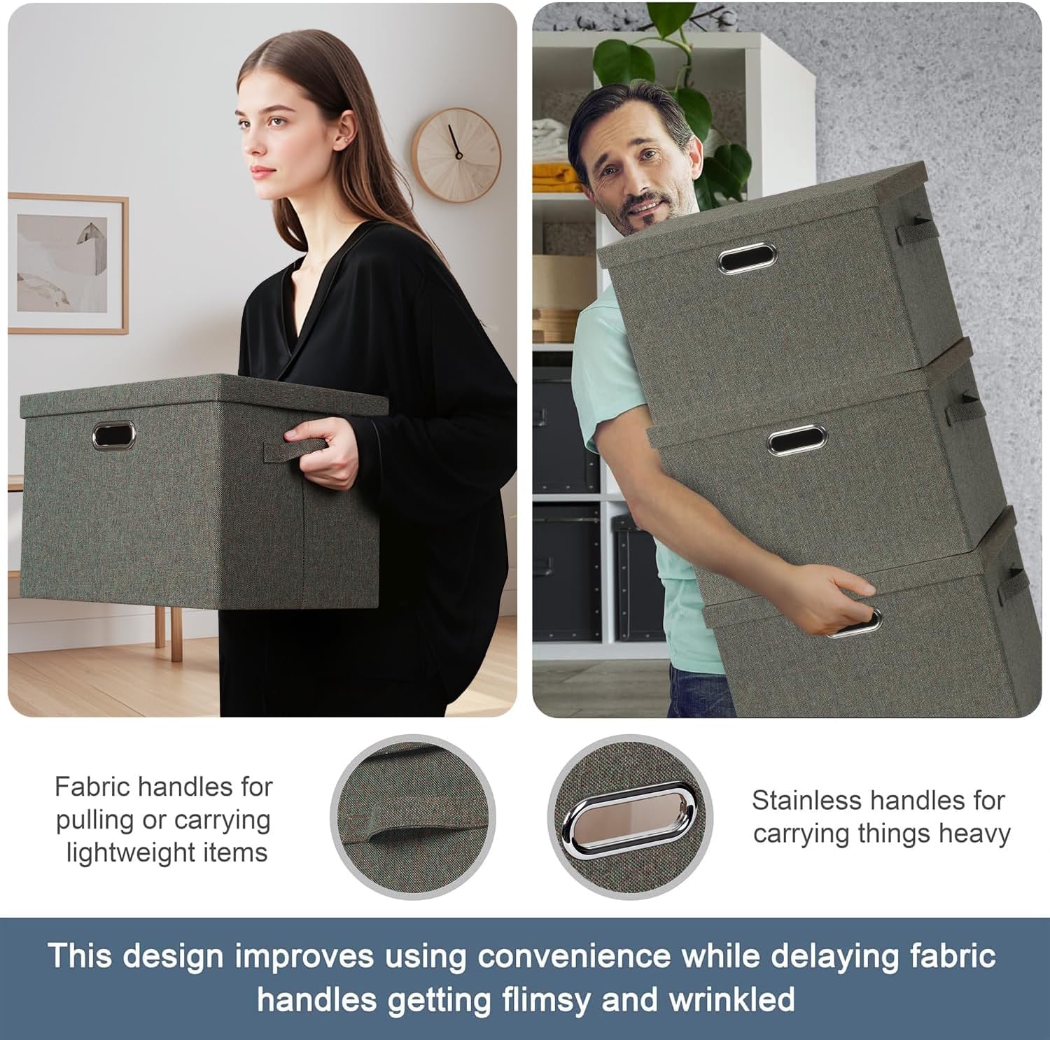 • ✅[Constant Use] Covered by thick textured cloth, our large lidded storage bins prevent daily wears and tears. They can keep dust and bugs out also, avoiding dirt and musty smell. You can use these decorative storage boxes with lids everyday or for long term storage.