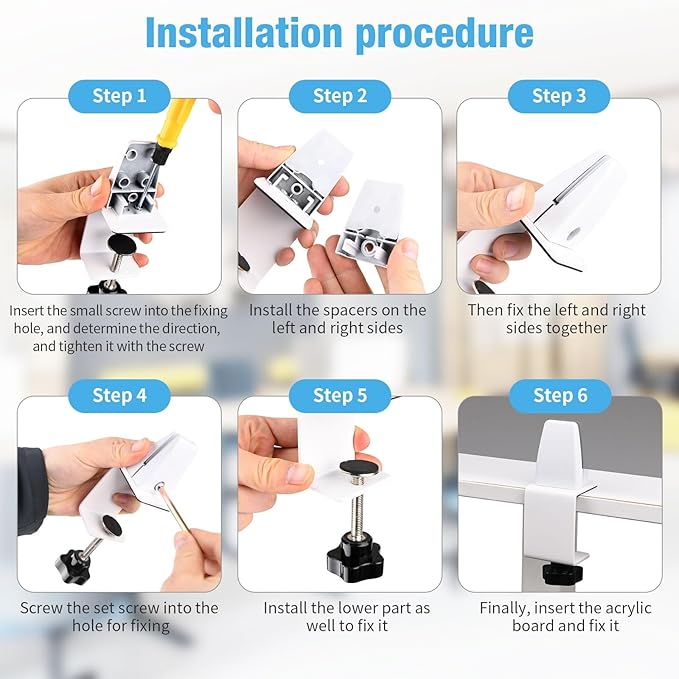 • 【High Quality Material】-Our acrylic desktop partitions are made of high-quality frosted acrylic, and the Clamps are made of high-strength alloy steel. They are beautiful and coordinated, and can perfectly blend with your office and learning environment. They are sturdy, durable, and easy to clean.Perfect packaging prevents the product from scratching the surface during shipping.