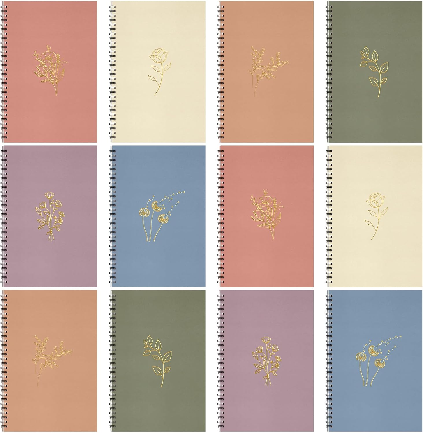 Fuutreo 12 Pcs Spiral Notebook for Work A5 8.3 x 5.7 Inch College Ruled Spiral Journal Notebook Kraft Cover Ruled Paper, 12 Color, 60 Sheets, 120 Pages for Office School(Hot Stamping)