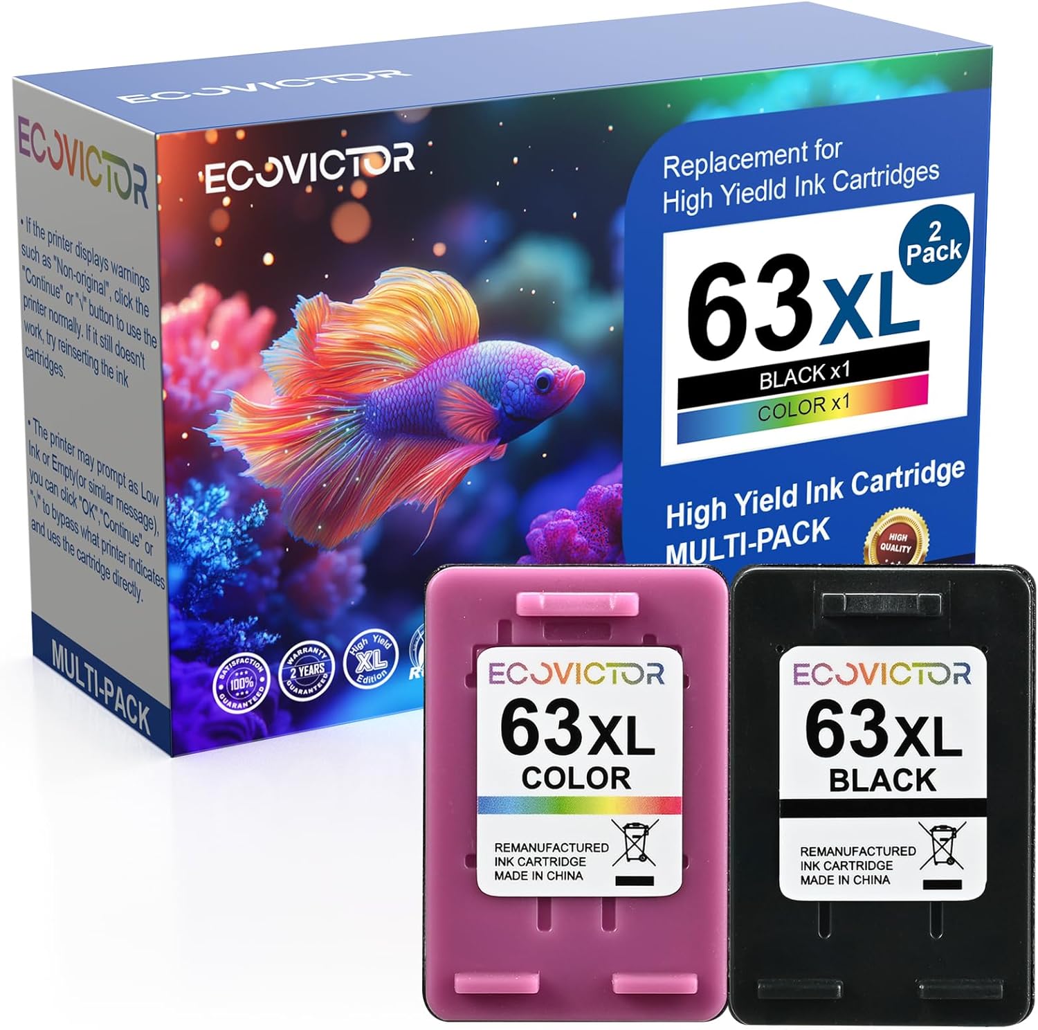• High Yield: EcoVictor for hp ink 63xl black and color combo pack page yield is up to 650 pages per 63xl black ink cartridge, and 400 pages per 63xl color ink cartridges (depends on printer and usage).
