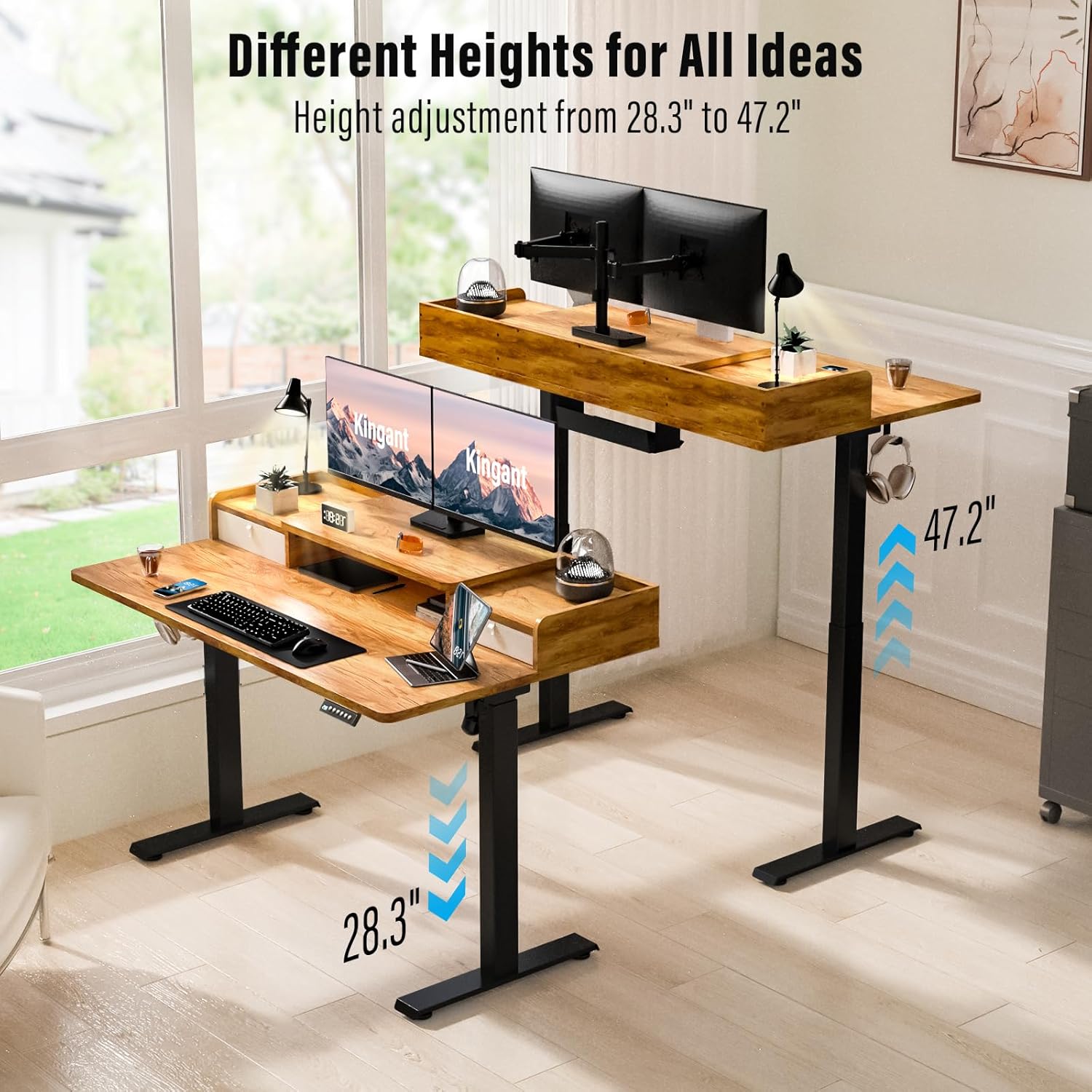 Standing Desk with Drawers,Thickened Table Legs Sit Stand Desk Electric for Home Office & Gaming,Ergonomic Stand Up Desk Cable Management Tray(Classic Black) (Light Rustic Brown, 48″ x 30″)