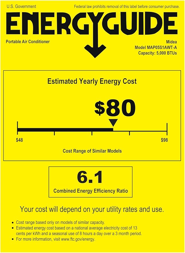 • SMARTCOOL - Midea 8,500 BTU ASHRAE (5,000 BTU SACC) Portable Air Conditioner delivers fast, effective cooling for spaces Up to 150 sq. ft. while providing fan and dehumidification functions in any home, creating a relaxing and comfortable environment