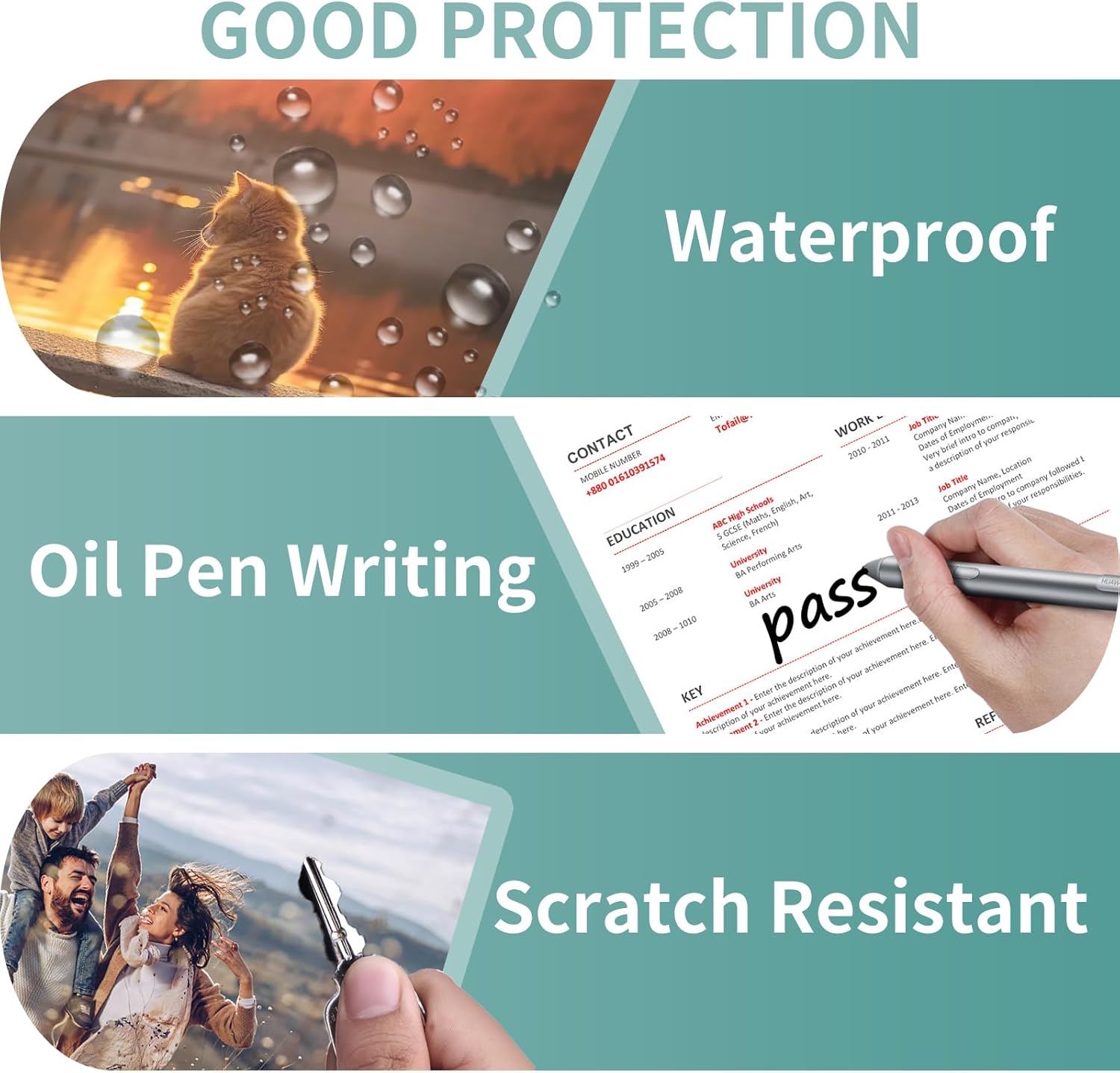 • Premium Material - Laminates are made of premium quality materials and are safe to process. Laceration resistant, double coating, anti-stain and waterproof. Write directly on the water-resistant pouch with dry-erase markers and easily wipe away any markings, the laminate sheet securely protects your document