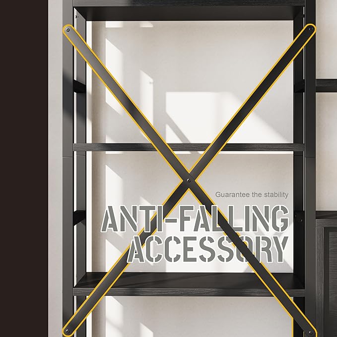 • 【Durable & Stable Construction】Tall bookshelf is crafted with a sturdy steel frame and high-quality wood panels. Bookshelves features a X-shaped bracket, adjustable foot pads, and an anti-tipping kit, enhancing the durability and stability of the bookcases. The robust structure ensures a long lifespan, making it a reliable and durable furniture piece in your home.