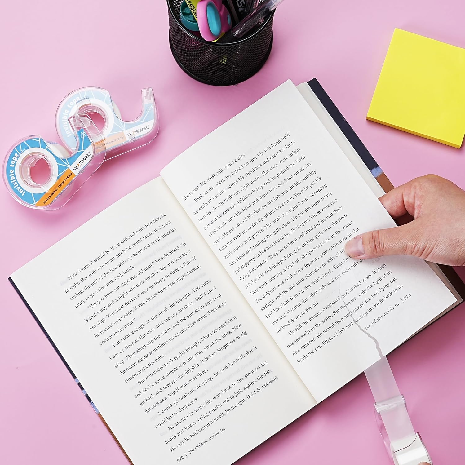• Tape surface: Matte finish, semi-transparent, does not completely cover documents or pictures. Writable surface, easy to mark and label on the tape. Suitable for packaging, labeling, and crafting.