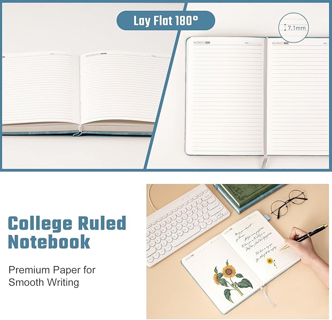 • Smooth Writing Experience: A5 size lined notebook, 7.1 mm college ruled journal for writing is made of 100 GSM high quality paper, no ink bleed when writing, can be 180 ° flat, give each girl a comfortable writing experience.