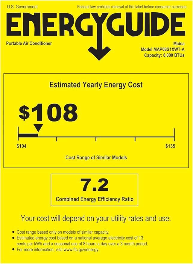 • SMARTCOOL - Midea 12,000 BTU ASHRAE (8,000 BTU SACC) Portable Air Conditioner delivers fast, effective cooling for spaces Up to 350 sq. ft. while providing fan and dehumidification functions in any home, creating a relaxing and comfortable environment