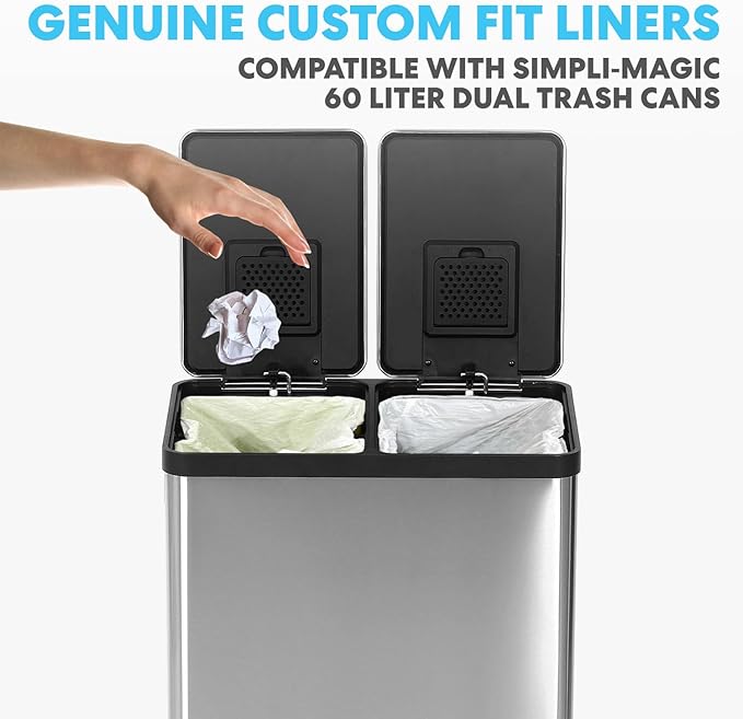 • GENUINE CUSTOM FIT LINERS - Simpli-Magic custom made liners are made to fit our cans perfectly so they don't slip, and provide a clean and sleek look