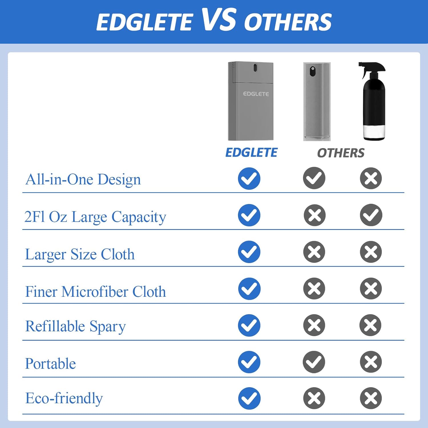 • SAFE FOR SCREENS - Edglete computer screen cleaner is crafted with a safe, gentle, and effective formula, ensuring it is colorless and odorless. This camera lens cleaner's quick-drying screen cleaning spray works seamlessly with the premium microfiber cleaning cloth, which is engineered to protect delicate touch screen coatings, preventing damage and scratches to anti-glare, anti-fingerprint, or oleophobic layers