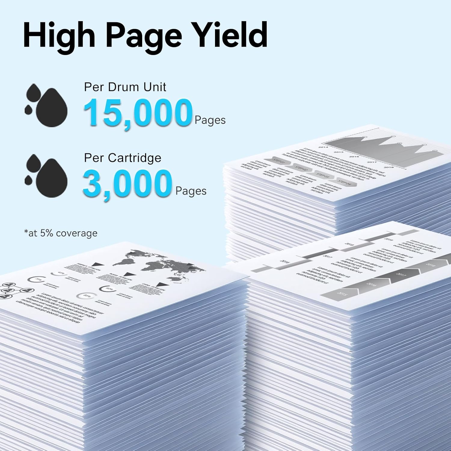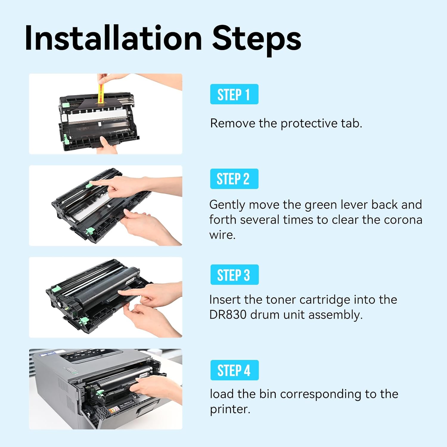 • Estimated Page Yield: Up to 3,000 pages per TN830XL toner and 15,000 pages per DR830 drum unit compatible for Brother DR830 toner cartridge (Letter/A4, at 5% coverage)