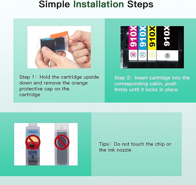 • PRINTERS MODEL COMPATIBILITY: 910XL Ink Cartridges for HP Printers Work for HP Officejet Pro 8020 8025 8028 8035; Officejet 8010 8015 8018 8022 Printers.