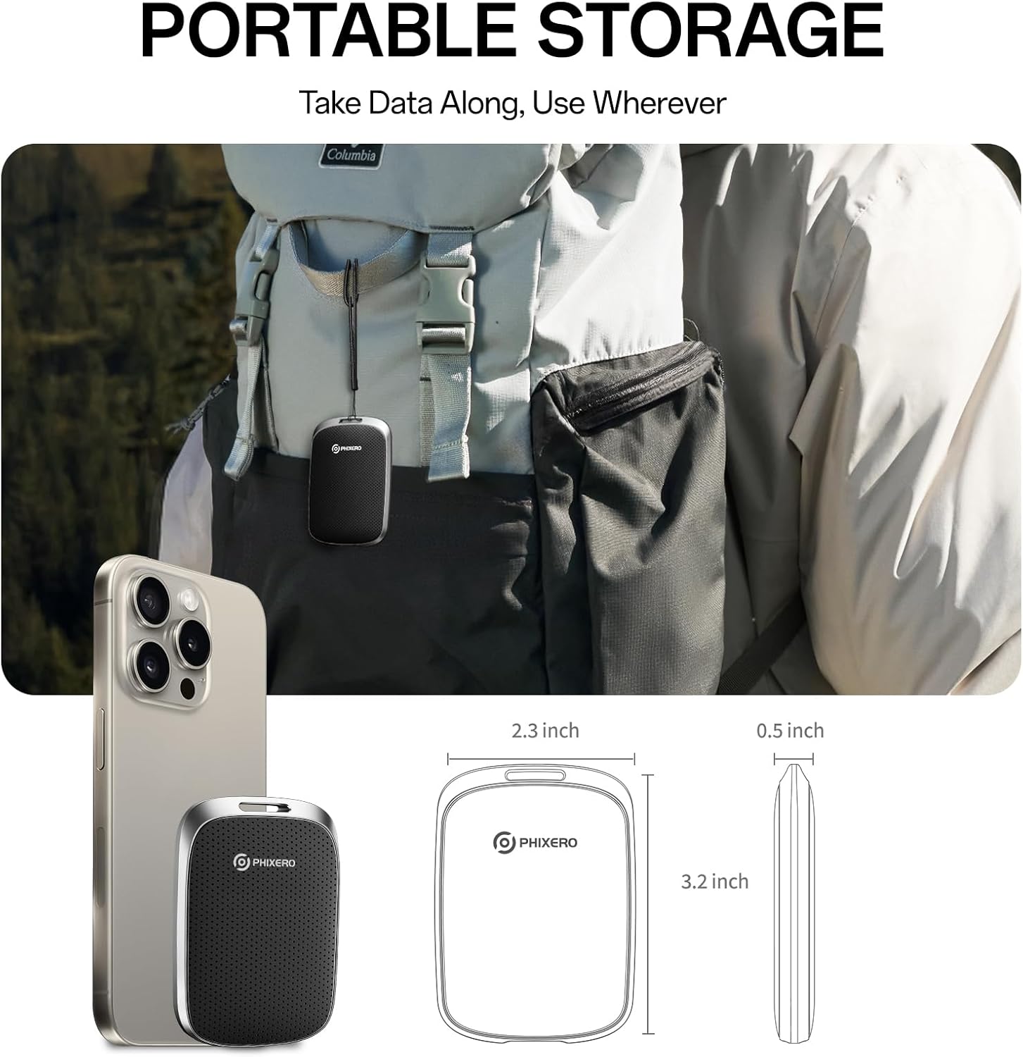 • 【Sturdy and Portable】PHIXERO P5PLUS External Solid State Drive adopts anti-drop, anti-vibration, anti-dust, and solid one-piece aluminum alloy frame with high strength and durability, making this portable hard drive keep the drive almost silent when running. The mini design makes it very convenient for you to carry and use. It can be easily put into a briefcase or a pocket of clothes.