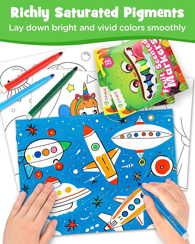 • 4 Irresistibly Fruity Scents: Each colored marker bursts with real fruit aromas: sweet strawberry, crisp apple, juicy blueberry, and tropical banana. The delightful scents add a sensory twist to coloring, making art time more engaging and fun. Turning every drawing into a multisensory adventure that fuels creativity and curiosity
