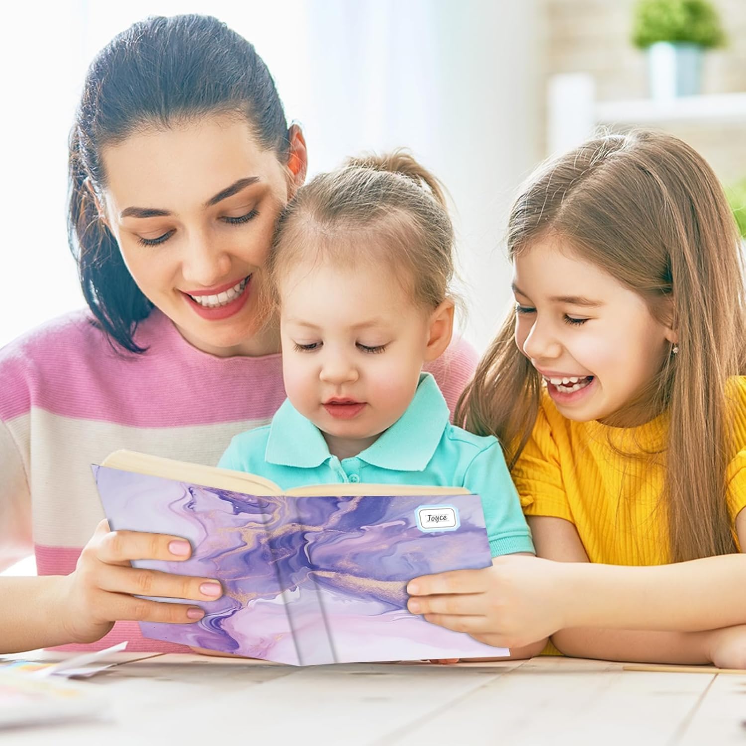 • Book cover kit: This pack comes with 8pcs stretchable book covers in different marble print styles, along with a sheet of name tag labels. These jumbo book covers fit books measuring 9x11 inches and can stretch up to 10x12.5 inches.