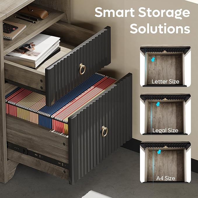• Efficient Storage: Bestier modern desk features an open storage compartment, a storage drawer and a file drawer for letter/A4/legal-size hanging file folders, providing efficient storage solutions to keep your workspace organized and your essentials within reach